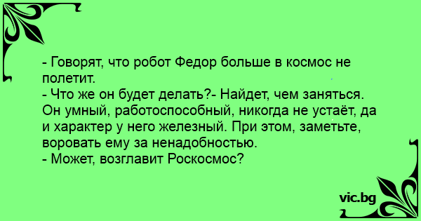 - Говорят, что робот Федор больше в космос не полетит.
