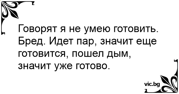Говорят я не умею готовить. Бред. Идет пар, значит еще готовится, пошел дым, значит уже готово.