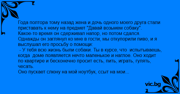 Года полтора тому назад жена и дочь одного моего друга стали приставать к нему на предмет "Давай возьмем собаку".