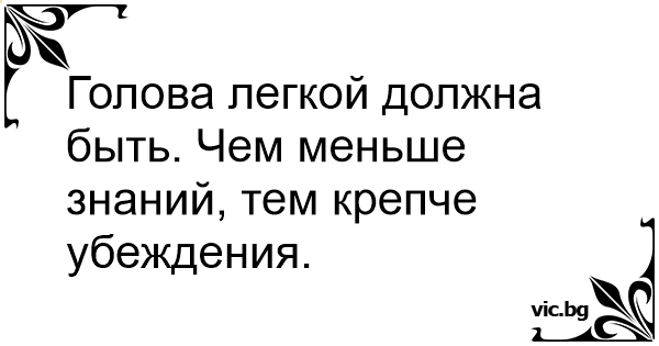 Голова легкой должна быть. Чем меньше знаний, тем крепче убеждения.