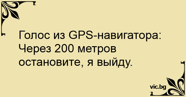 Голос из GPS-навигатора: Через 200 метров остановите, я выйду.