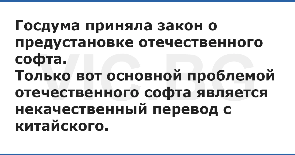 Госдума приняла закон о предустановке отечественного софта. Только вот основной проблемой отечественного софта является некачественный перевод с китайского.