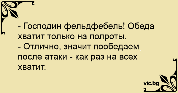 - Господин фельдфебель! Обеда хватит только на полроты.