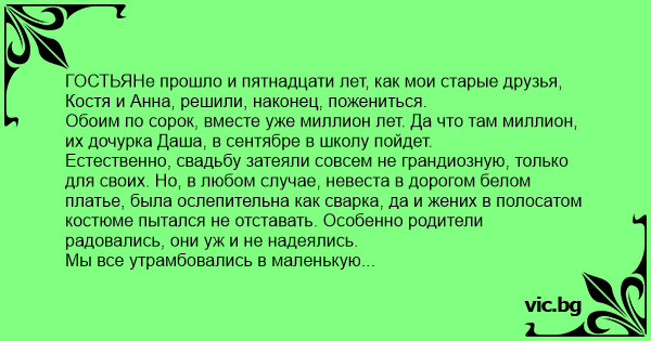 ГОСТЬЯНе прошло и пятнадцати лет, как мои старые друзья, Костя и Анна, решили, наконец, пожениться.