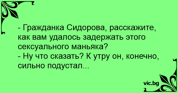 - Гражданка Сидорова, расскажите, как вам удалось задержать этого сексуального маньяка?