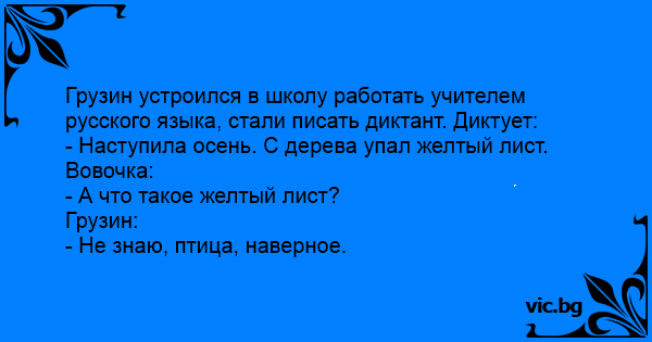 Грузин устроился в школу работать учителем русского языка, стали писать диктант. Диктует: