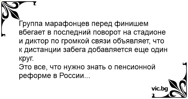 Группа марафонцев перед финишем вбегает в последний поворот на стадионе и диктор по громкой связи объявляет, что к дистанции забега добавляется еще один круг.