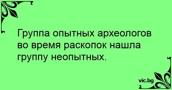 Группа опытных археологов во время раскопок нашла группу неопытных.