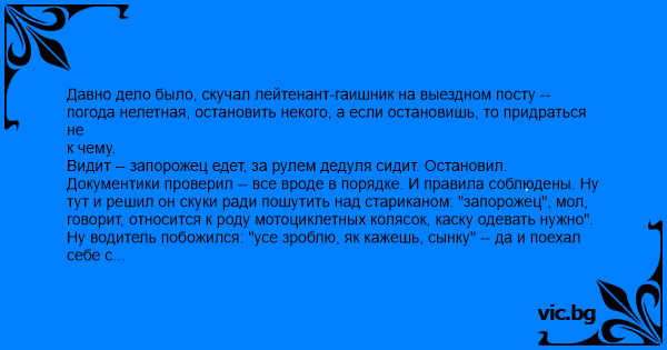тут и решил он скуки ради пошутить над стариканом: "запорожец", мол,