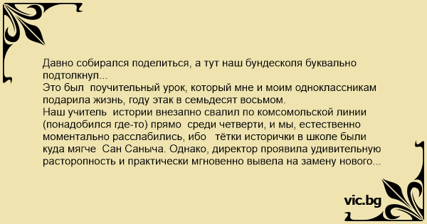 Это был поучительный урок, который мне и моим одноклассникам подарила жизнь, году этак в семьдесят восьмом.