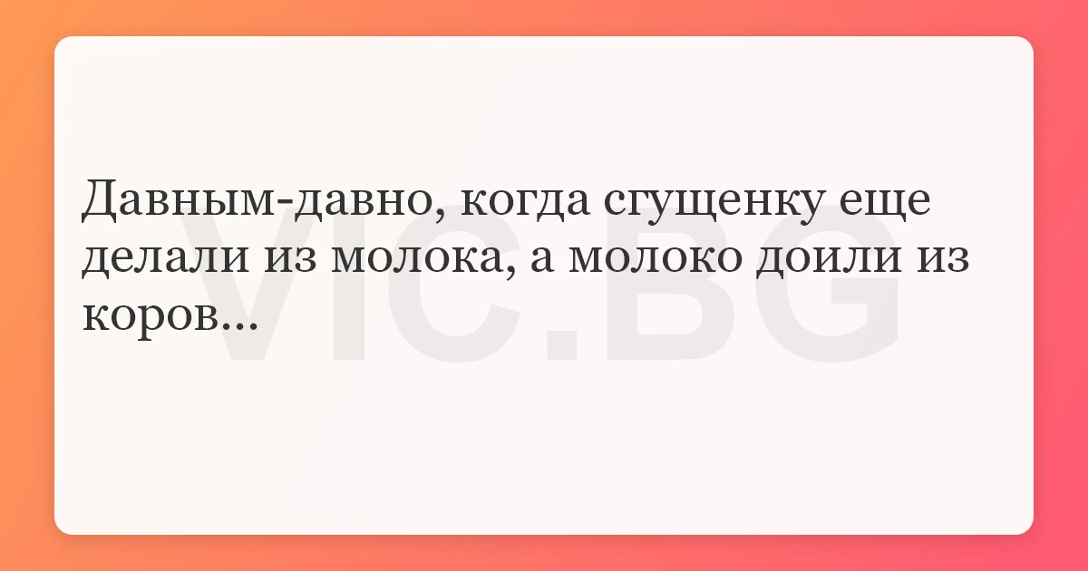 Давным-давно, когда сгущенку еще делали из молока, а молоко доили из коров...