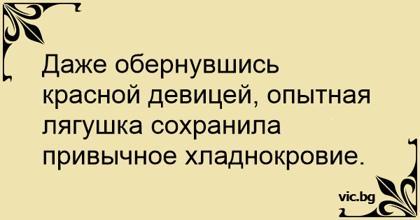 Даже обернувшись красной девицей, опытная лягушка сохранила привычное хладнокровие.