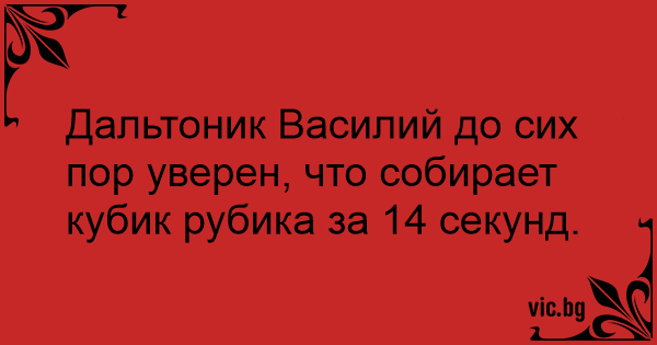 Дальтоник Василий до сих пор уверен, что собирает кубик рубика за 14 секунд.