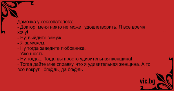- Доктор, меня никто не может удовлетворить. Я все время хочу!