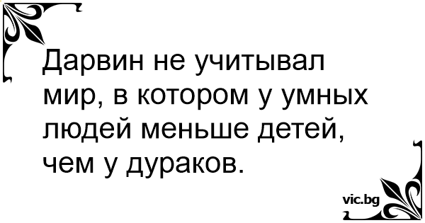 Дарвин не учитывал мир, в котором у умных людей меньше детей, чем у дураков.