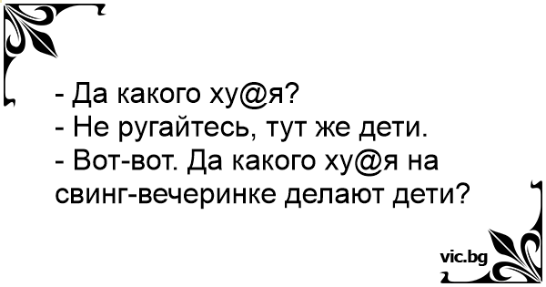 - Вот-вот. Да какого ху@я на свинг-вечеринке делают дети?