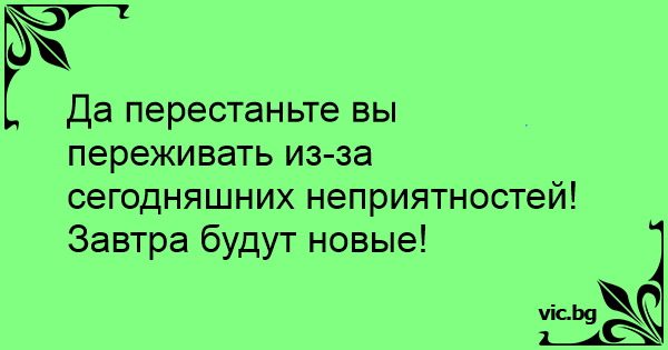 Да перестаньте вы переживать из-за сегодняшних неприятностей! Завтра будут новые!