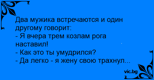 На офіцерські збори ввалюється в мотлох п'яний поручик Ржевський і голосно вимовляє: "Панове! Я наставив всім вам роги !!!". Всі здивовано. Поручик роз'яснює: "Сьогодні вночі, панове, я переспав з...