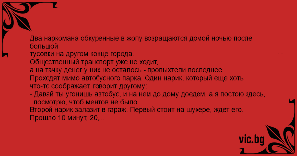 Проходят мимо автобусного парка. Один нарик, который еще хоть