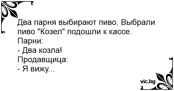 Два парня выбирают пиво. Выбрали пиво "Козел" подошли к кассе. Парни: