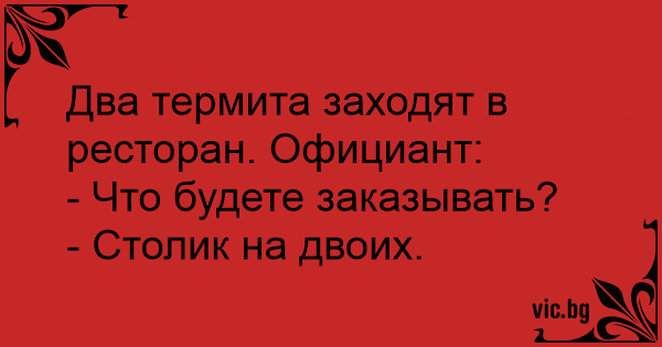 Два термита заходят в ресторан. Официант: