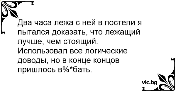 Два часа лежа с ней в постели я пытался доказать, что лежащий лучше, чем стоящий.