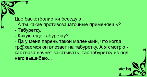 - Да у меня парень такой маленький, что когда тр@хаемся он влезает на табуретку. А я смотрю - как глаза начнет закатывать, так табуретку из-под него вышибаю...