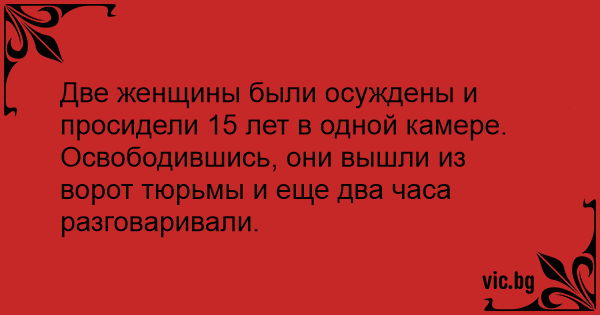 Две женщины были осуждены и просидели 15 лет в одной камере. Освободившись, они вышли из ворот тюрьмы и еще два часа разговаривали.
