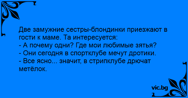 Две замужние сестры-блондинки приезжают в гости к маме. Та интересуется: