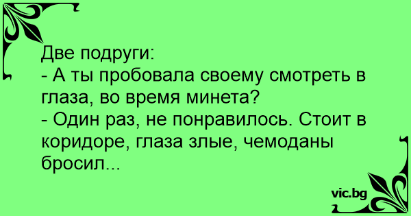 - А ты пробовала своему смотреть в глаза, во время минета?