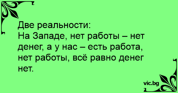 На Западе, нет работы – нет денег, а у нас – есть работа, нет работы, всё равно денег нет.