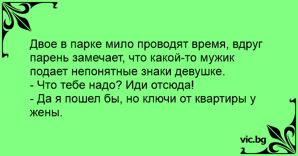 Двое в парке мило проводят время, вдруг парень замечает, что какой-то мужик подает непонятные знаки девушке.