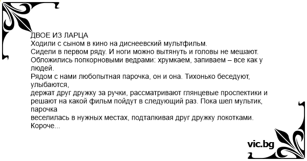 ДВОЕ ИЗ ЛАРЦА Ходили с сыном в кино на диснеевский мультфильм.