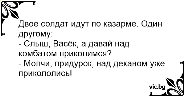 - Слыш, Васёк, а давай над комбатом приколимся?