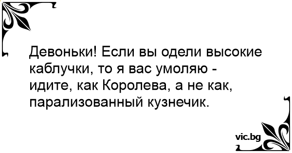 Девоньки! Если вы одели высокие каблучки, то я вас умоляю - идите, как Королева, а не как, парализованный кузнечик.