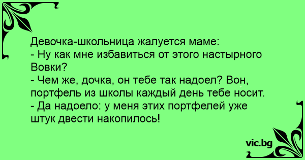 - Чем же, дочка, он тебе так надоел? Вон, портфель из школы каждый день тебе носит.
