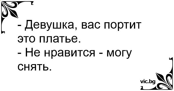 - Девушка, вас портит это платье.<br />- Не нравится - могу снять.