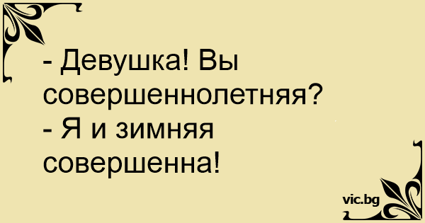 - Девушка! Вы совершеннолетняя?<br />- Я и зимняя совершенна!