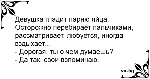 Efter samlaget stryker hon sin älskares penis. Han: - Vill du ha sex igen? - Nej, jag bara beundrar din penis… Jag hade en sån en gång!