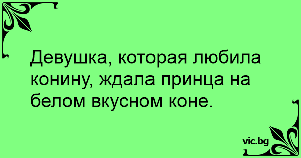Девушка, которая любила конину, ждала принца на белом вкусном коне.<br />