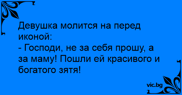 - Господи, не за себя прошу, а за маму! Пошли ей красивого и богатого зятя!