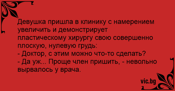 Девушка пришла в клинику с намерением увеличить и демонстрирует пластическому хирургу свою совершенно плоскую, нулевую грудь: