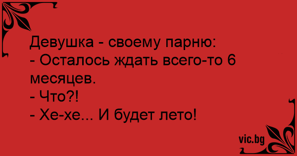 Момиче към приятеля си. - Останах още само 6 месеца да чакаме .. - Какво!?!? - .. и ще дойде лятото