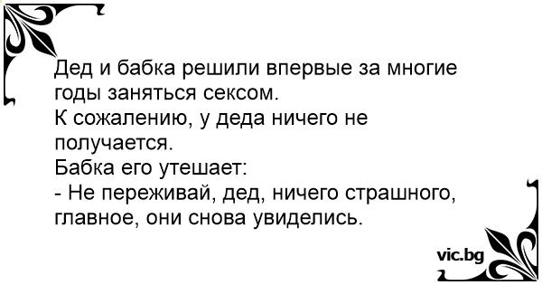 Дед и бабка решили впервые за многие годы заняться сексом.