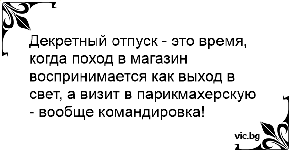 Декретный отпуск - это время, когда поход в магазин воспринимается как выход в свет, а визит в парикмахерскую - вообще командировка!