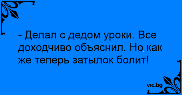 - Делал с дедом уроки. Все доходчиво объяснил. Но как же теперь затылок болит!