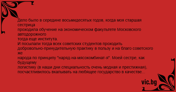 народа по принципу "наряд-на-мясокомбинат-я". Моей сестре, как будущему