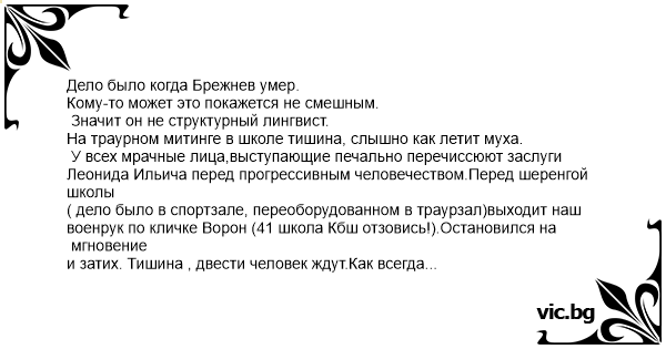 Дело было когда Брежнев умер.