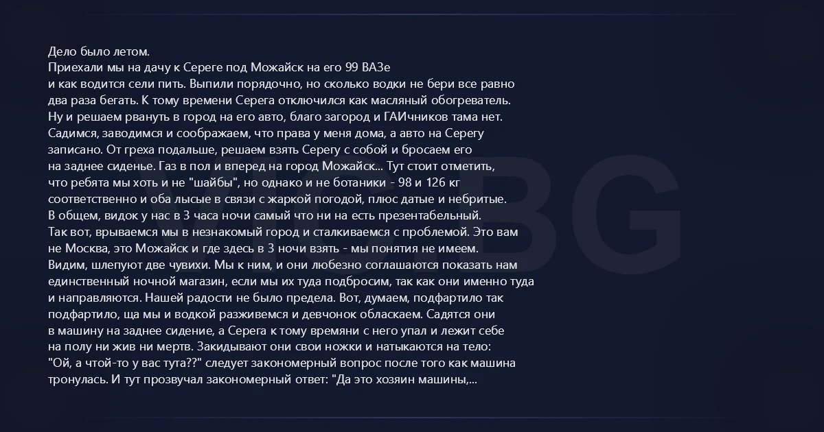 Ну и решаем рвануть в город на его авто, благо загород и ГАИчников тама нет.
