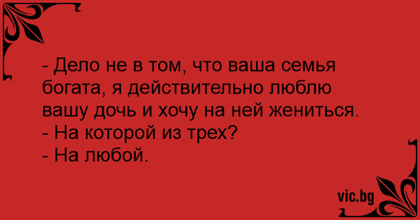 - Дело не в том, что ваша семья богата, я действительно люблю вашу дочь и хочу на ней жениться.